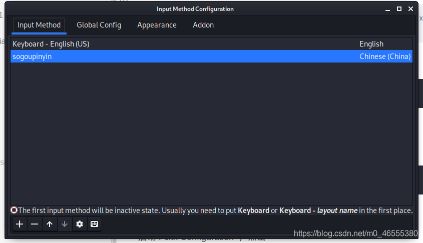 在Fcitx Configuration 中添加输入法时, 无法找到sogoupinyin